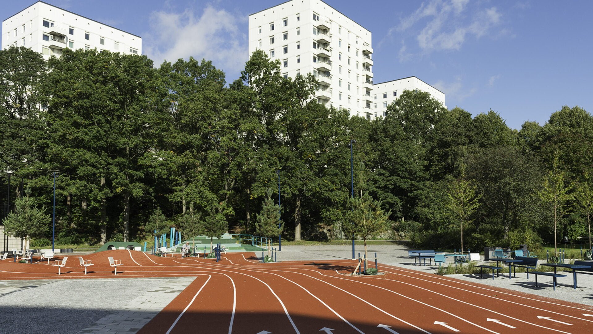 In the eastern part of the park, there is an area for playing pétanque, a playground designed for disabled children, and a barbecue area. The activity square is open and accessible to everyone – children and young adults, senior citizens, and families with children alike. By virtue of being located next to Rågsved School, the field encourages the students to use the activities in their education and their free time.
