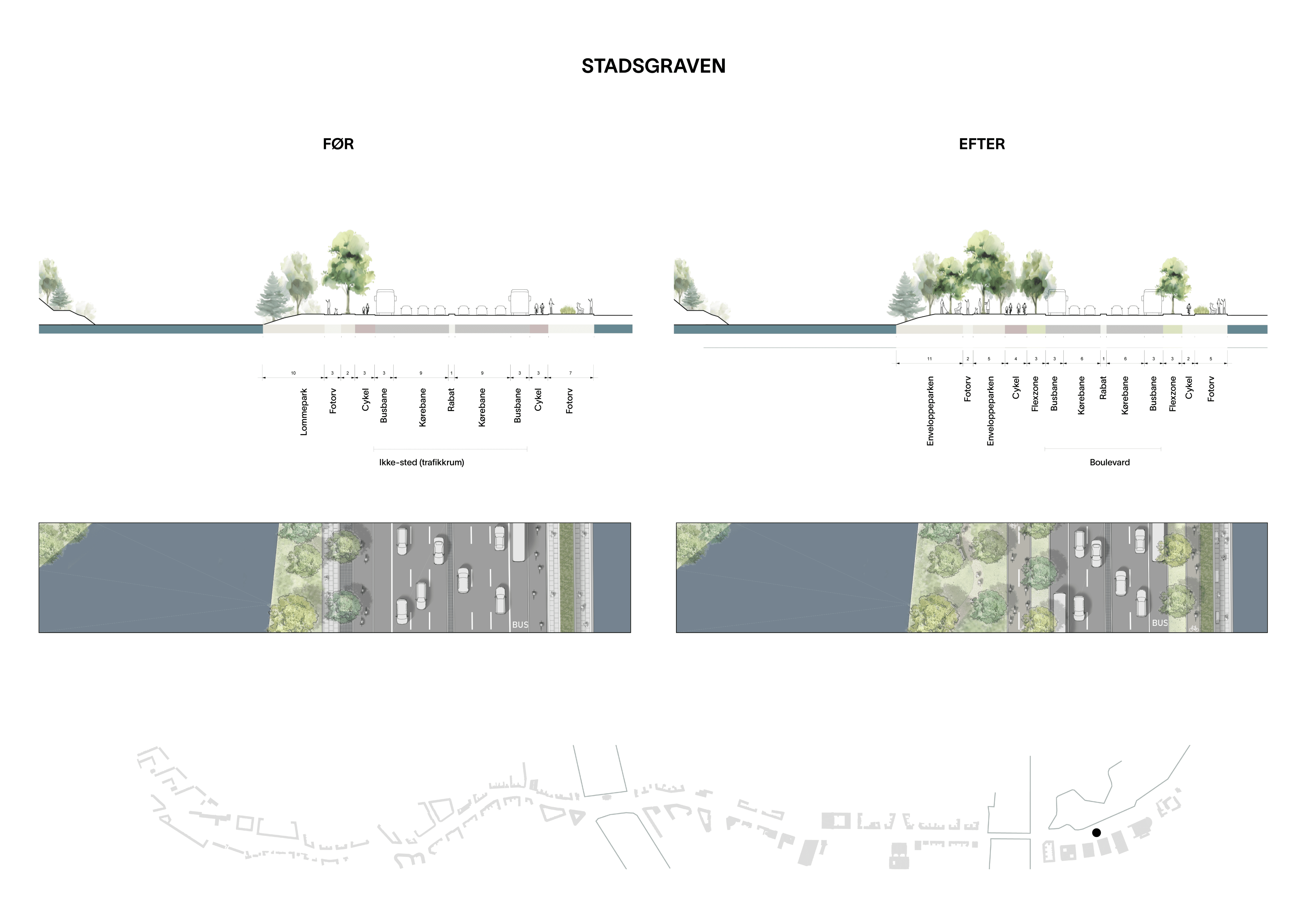 Den flod af asfalt, der før skar byen over i to, vil på ny blive indtaget af københavnerne, og hvad der før havde karakter af et menneskefjendsk trafikrum, vil i fremtiden blive byens nye urbane nerve på linje med de klassiske boulevarder i andre europæiske hovedstæder.