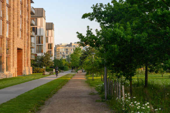 “The green car-free landscape increases biodiversity in the area and provides the tenants with an interesting and colorful view from their apartments“