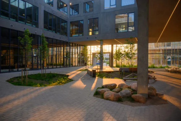 “The green car-free landscape increases biodiversity in the area and provides the tenants with an interesting and colorful view from their apartments“