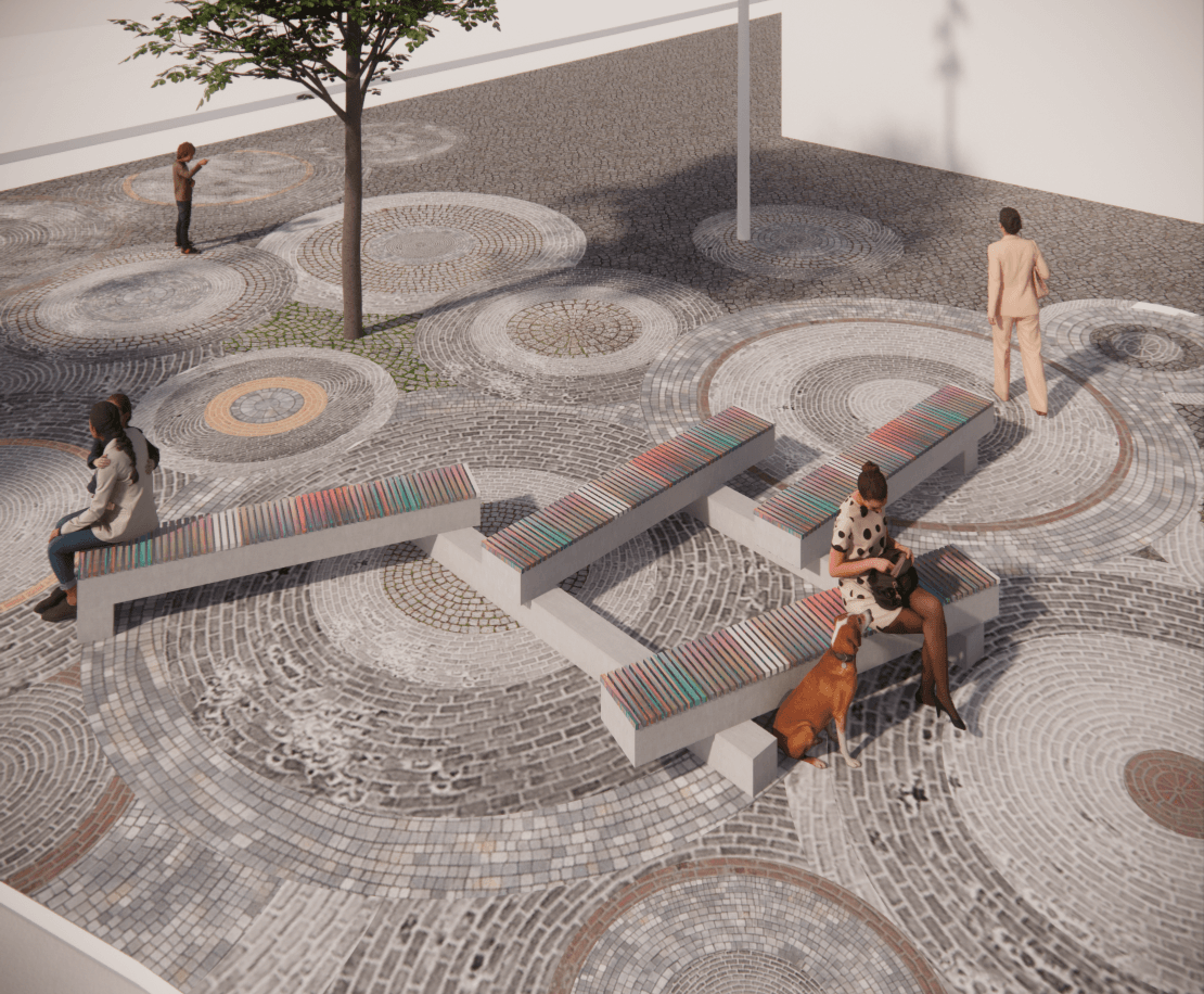 The public space has been upgraded with new seating options – including the distinctive plastic sleeper benches made from recycled ocean plastic – that encourage both short breaks and social interaction.