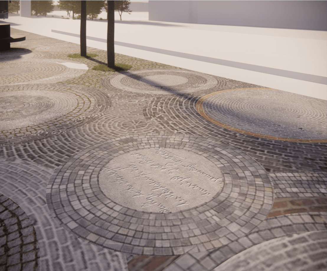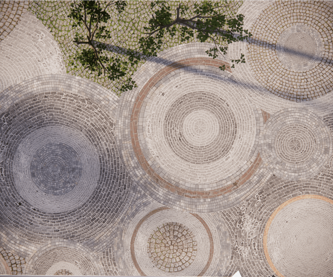 The project revitalizes the area through a series of carefully considered, high-quality interventions. A continuous paving design – extending through Enghaven – is executed in circular patterns using reclaimed bricks, cobblestones, and concrete tiles. This approach not only establishes a strong visual coherence across the site but also significantly reduces resource consumption by prioritizing reuse and sustainable material choices.