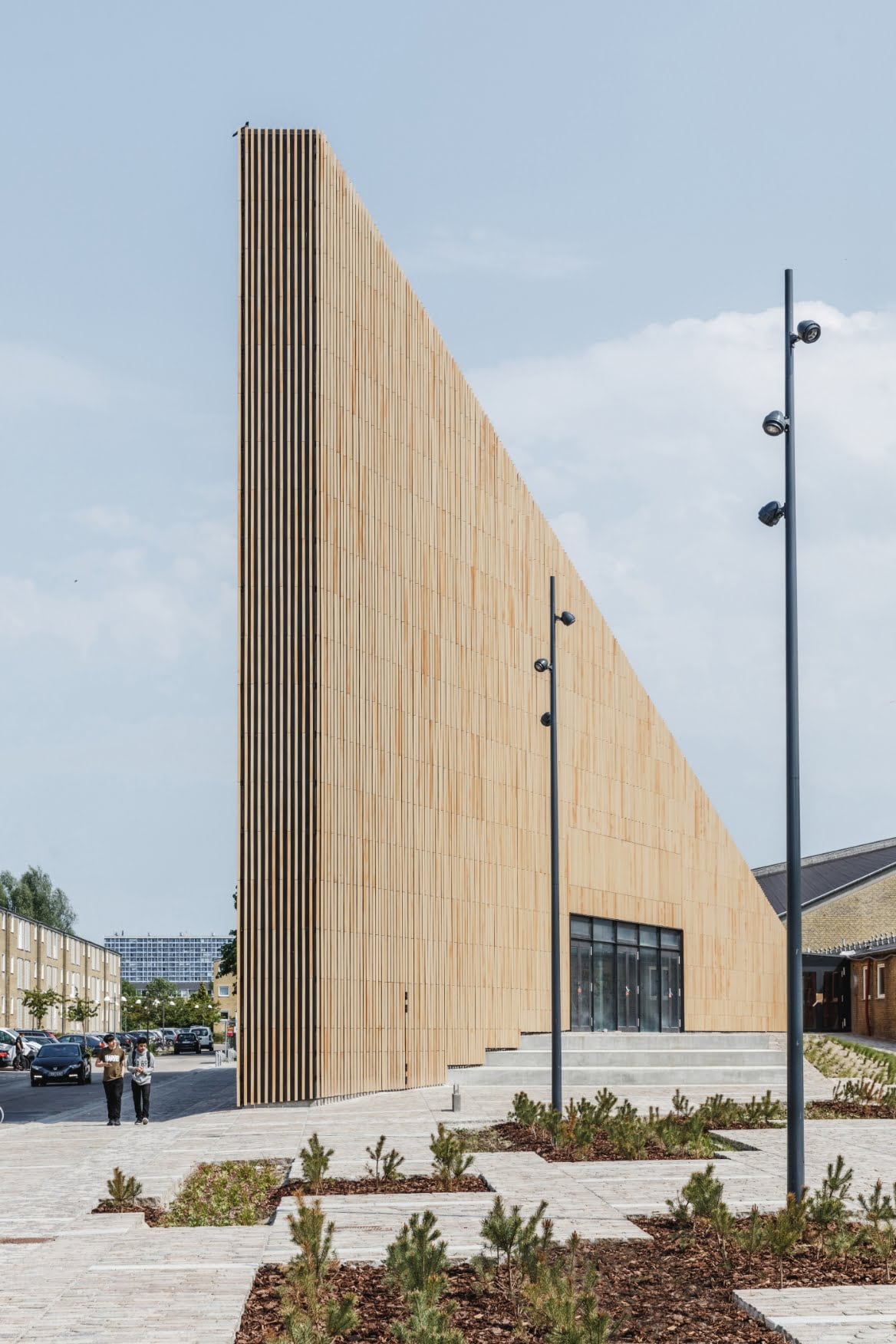 Tingbjergs Culture House and Library is located in the important cultural environment in the district created by architect Steen Eiler Rasmussen and landscape architect C.Th.Sørensen in the 1950s. The new culture house is a new distinctive landmark for Tingbjerg and is intended to promote cohesion and community in the area. Kragh Berglund’s square around the building is rooted in a similar set of aspirations. It can host informal activities as well as market days and other large-scale cultural events.