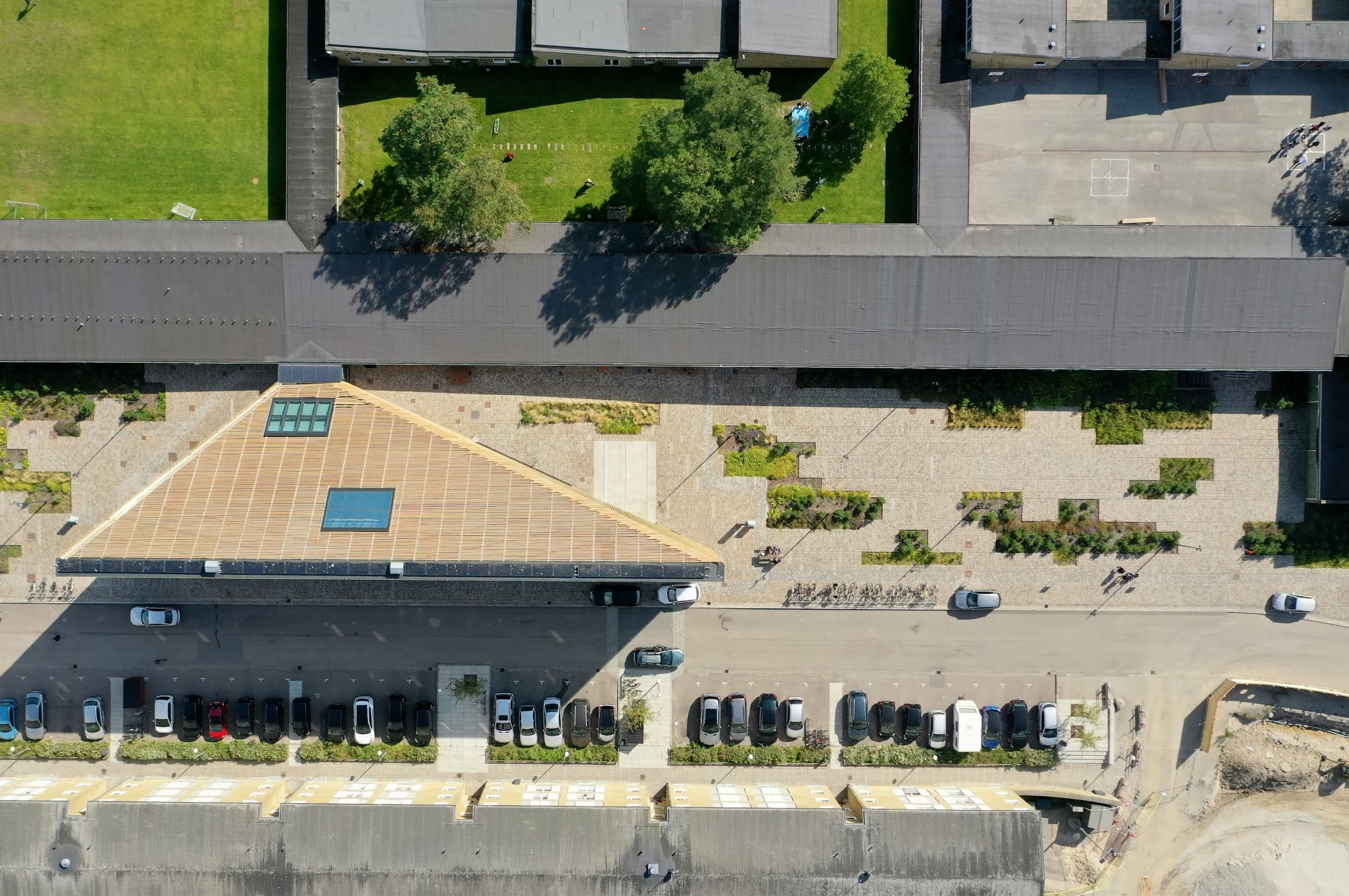 The cultural house and the square are the beginning of a comprehensive urban renovation process in the area. The two constitute the neighborhood’s new cultural gathering point. The building and the landscape have been embedded into the existing landscape and bring to mind Steen Eiler Rasmussen and C. Th. Sørensen’s iconic architecture.