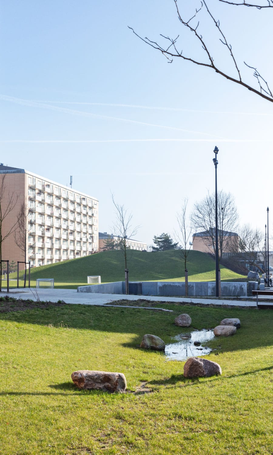 Local drainage of rainwater is an integrated part of the project, using water as a resource for play and experiences in the area – disconnecting the rainwater from the sewer system