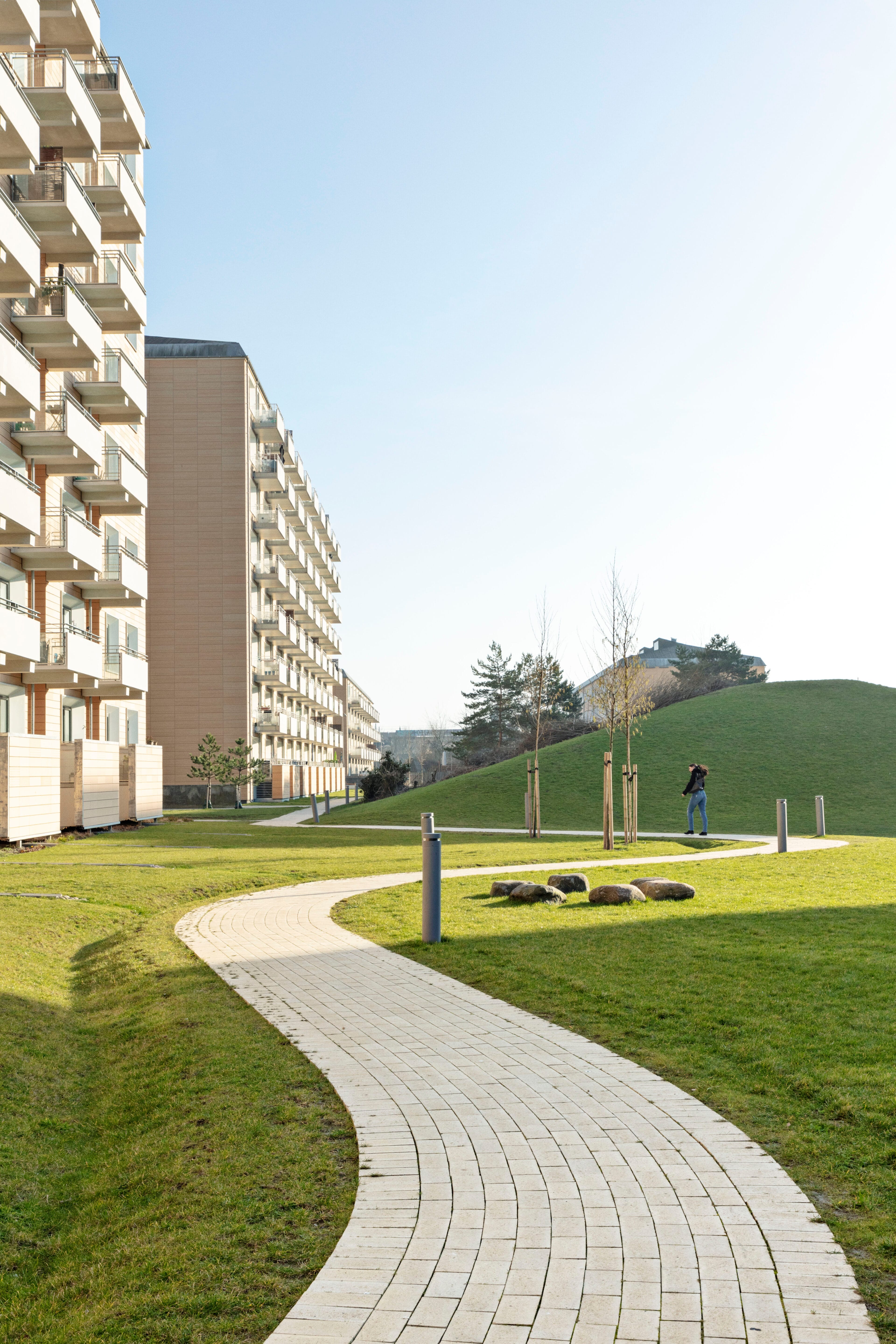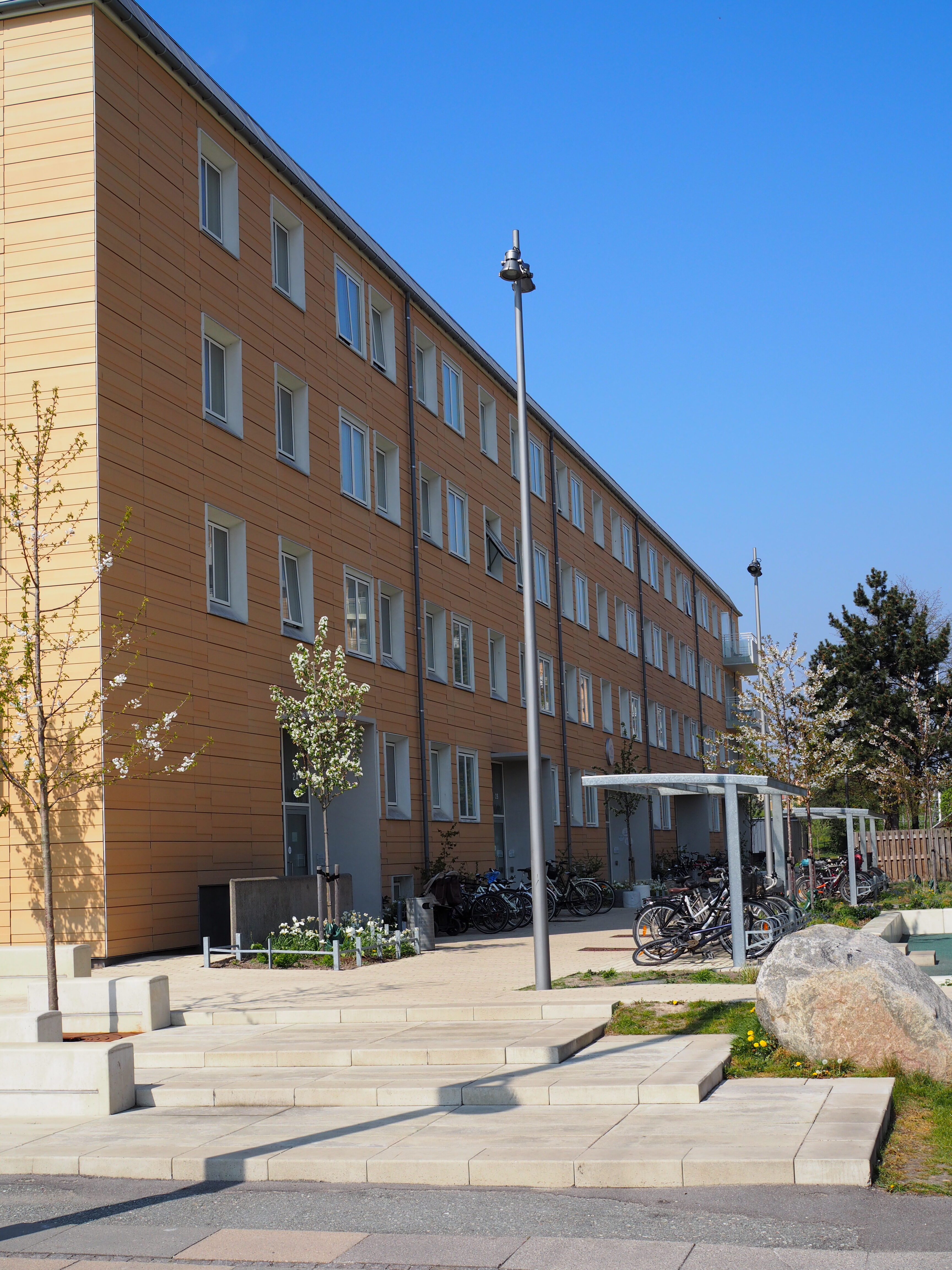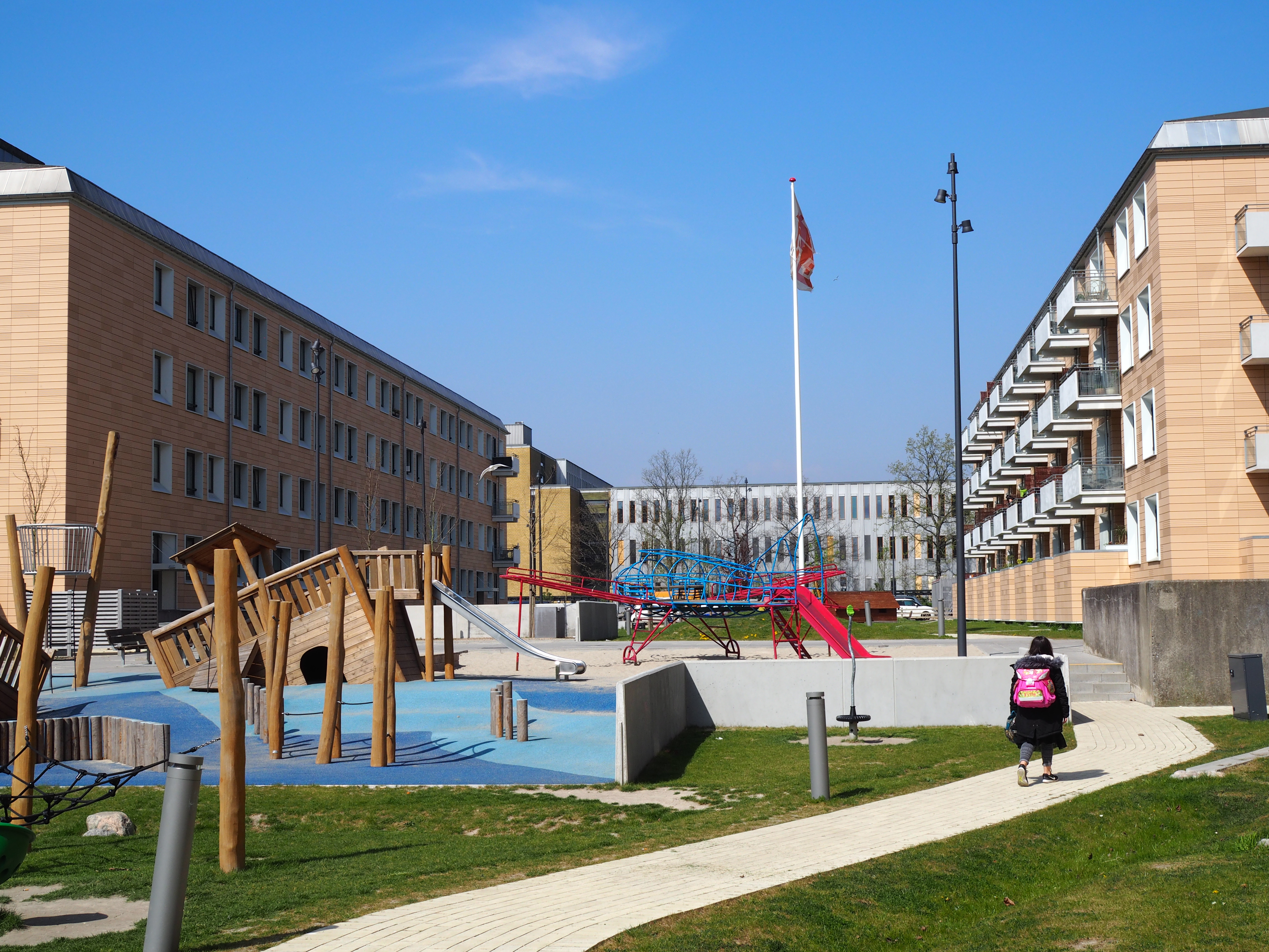 The big buildings were providing challenges with scale, light, wind and security. Kragh Berglund worked a lot with user involvement, our focus was to create spaces where the human scale is represented and to work on exploiting the areas with sun. “Solstriben/The sun ray” an axis going through the area is the space with the most hours of sunshine – this axis is the central place where we create room for activity, meetings and recreation